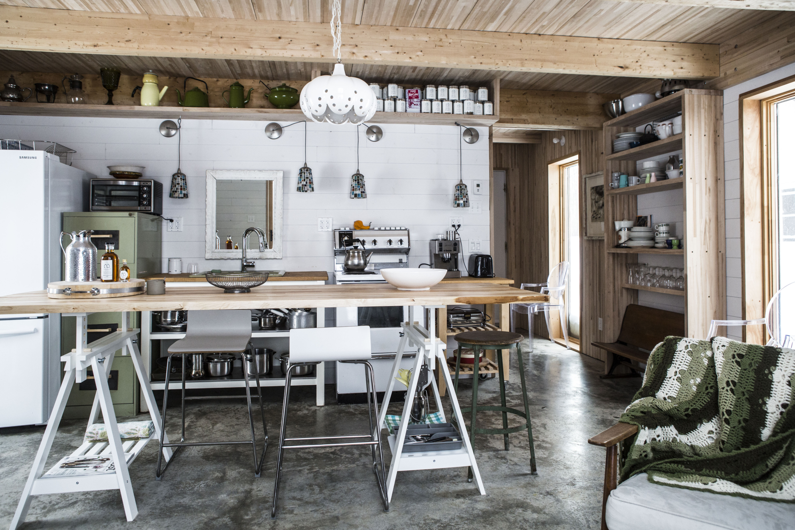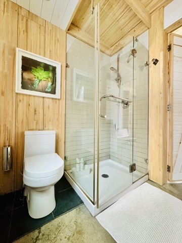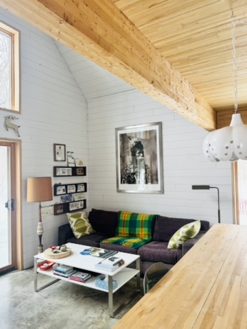 - Chambre à aire ouverte sur mezzanine : 2 lits queen et 1 lit simple.